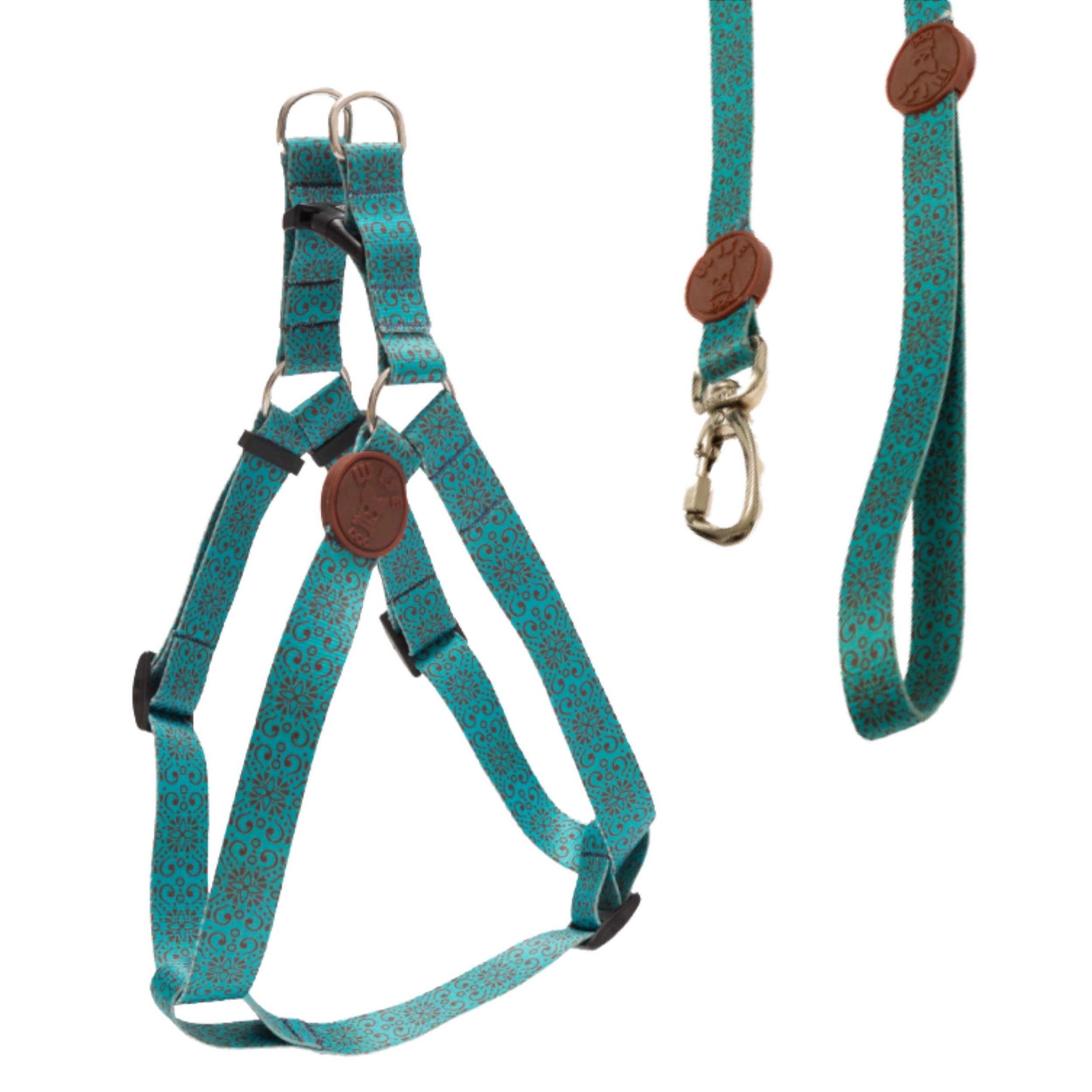 Coleira Peitoral Americano + Guia Tamanho P Verde Água Com Estampa - Wise Dog