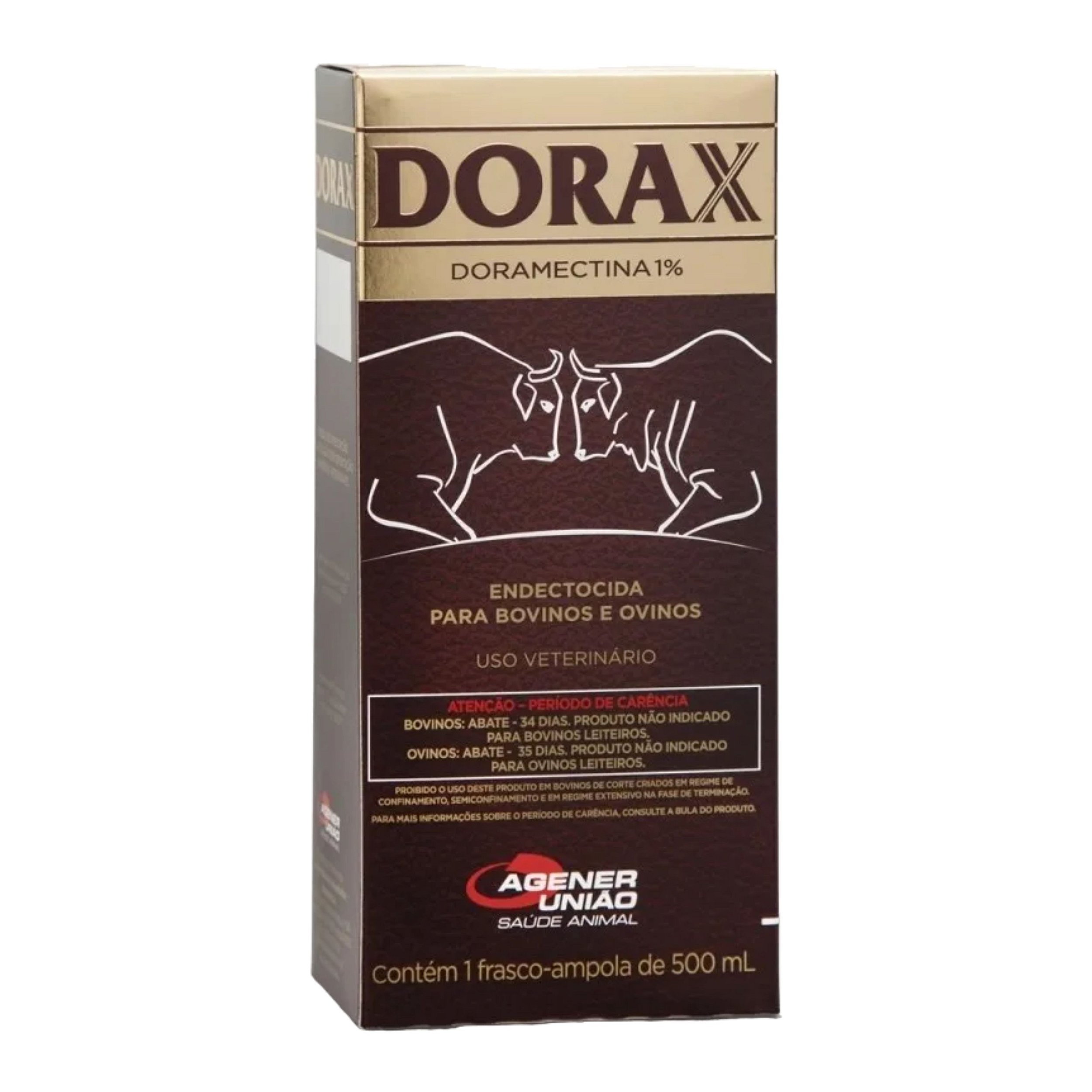 Dorax 1% é um endectocida para bovinos e ovinos à base de Doramectina. A doramectina é uma lactona macrocíclica da família das avermectinas, produto de fermentação do Streptomyces avermetilis, derivada por síntese mutacional. O produto controla com alta eficiência e ampla margem de segurança endo e ectoparasitas simultaneamente.