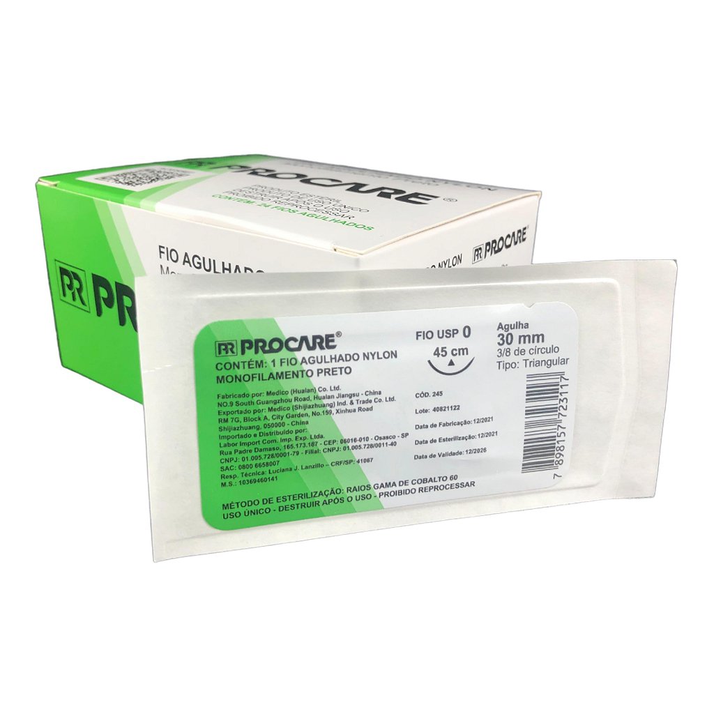 O Fio Agulhado de Nylon Procare atende aos diversos tipos de procedimentos cirúrgicos ou ambulatoriais, podendo variar de diâmetro e comprimento, tipo de ponta, curvatura e cabo, os quais definem o tipo e o código do produto.