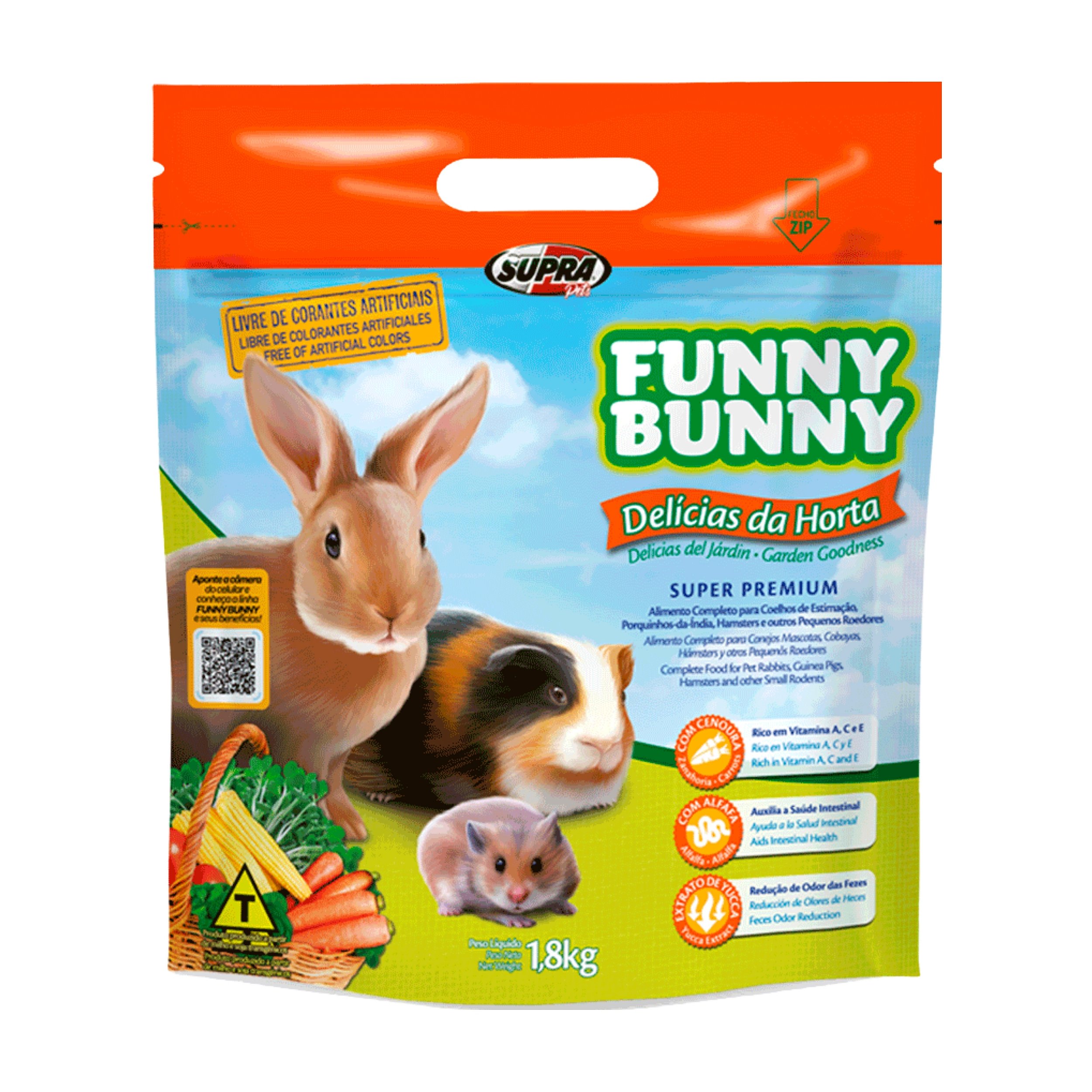 O produto tem a partícula Funny Bunny extrusada na composição e novas fontes de fibra – como alfafa peletizada e polpa de beterraba. A fonte de energia é o milho laminado, enquanto a maçã e a cenoura desidratada são excelentes fontes de antioxidantes e vitaminas. O Nutry Complex fornece vitaminas e minerais.