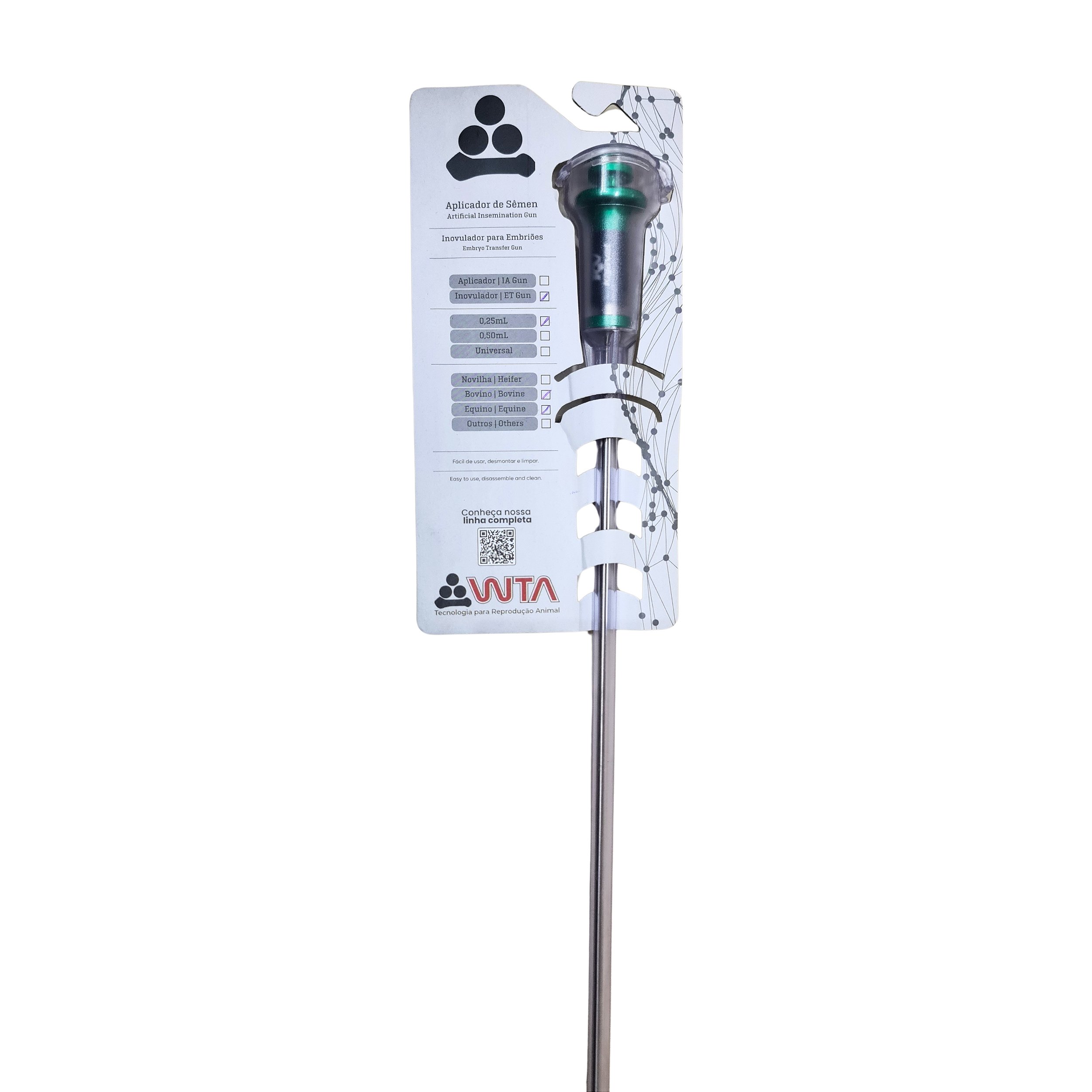 Inovulador em alumínio para transferência de embriões em equinos e bovinos.