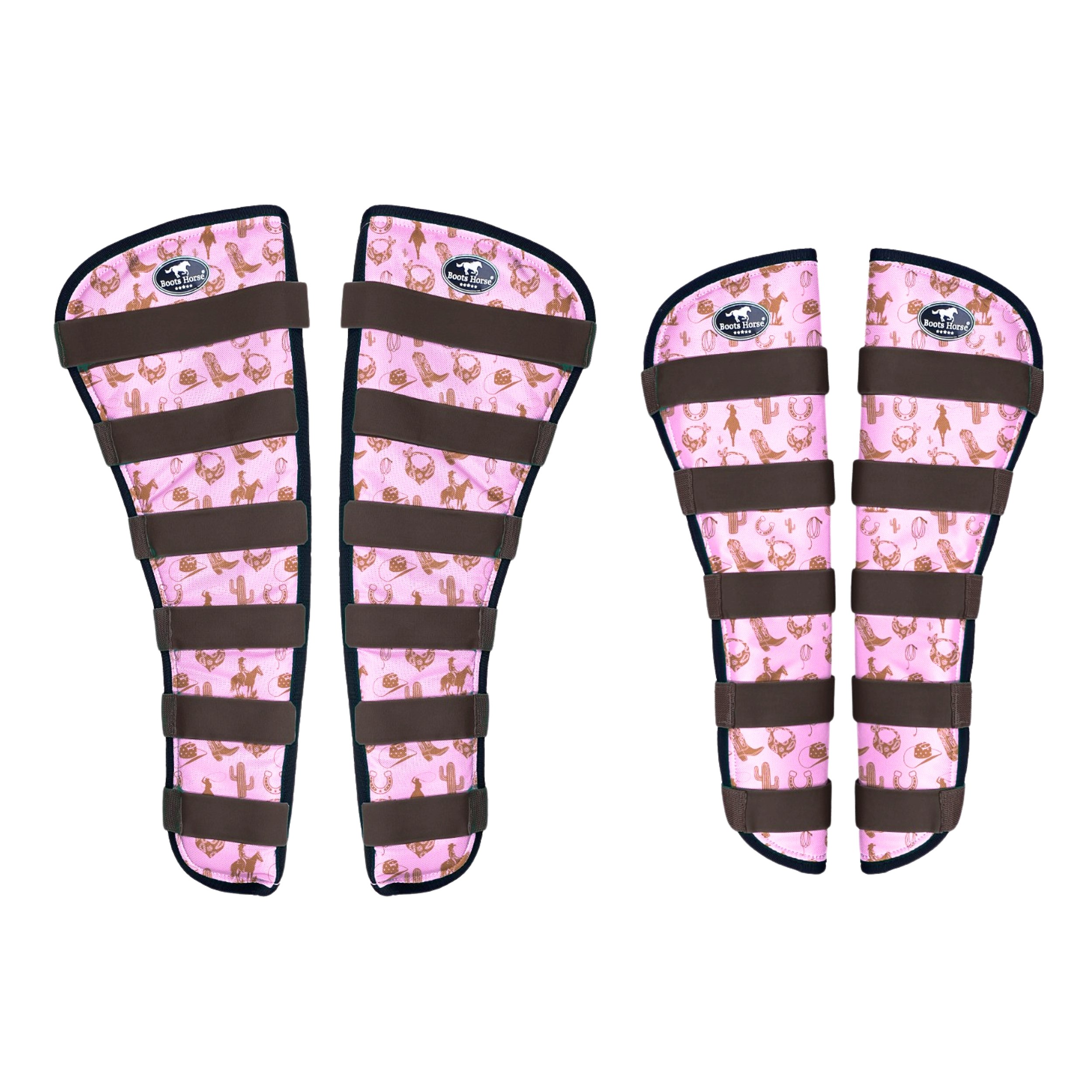Indicado para proteger, as patas dianteiras e traseiras, a canela, boleto, joelho, jarrete, machinho, quartela e cascos, usado normalmente durante o transporte dos cavalos.