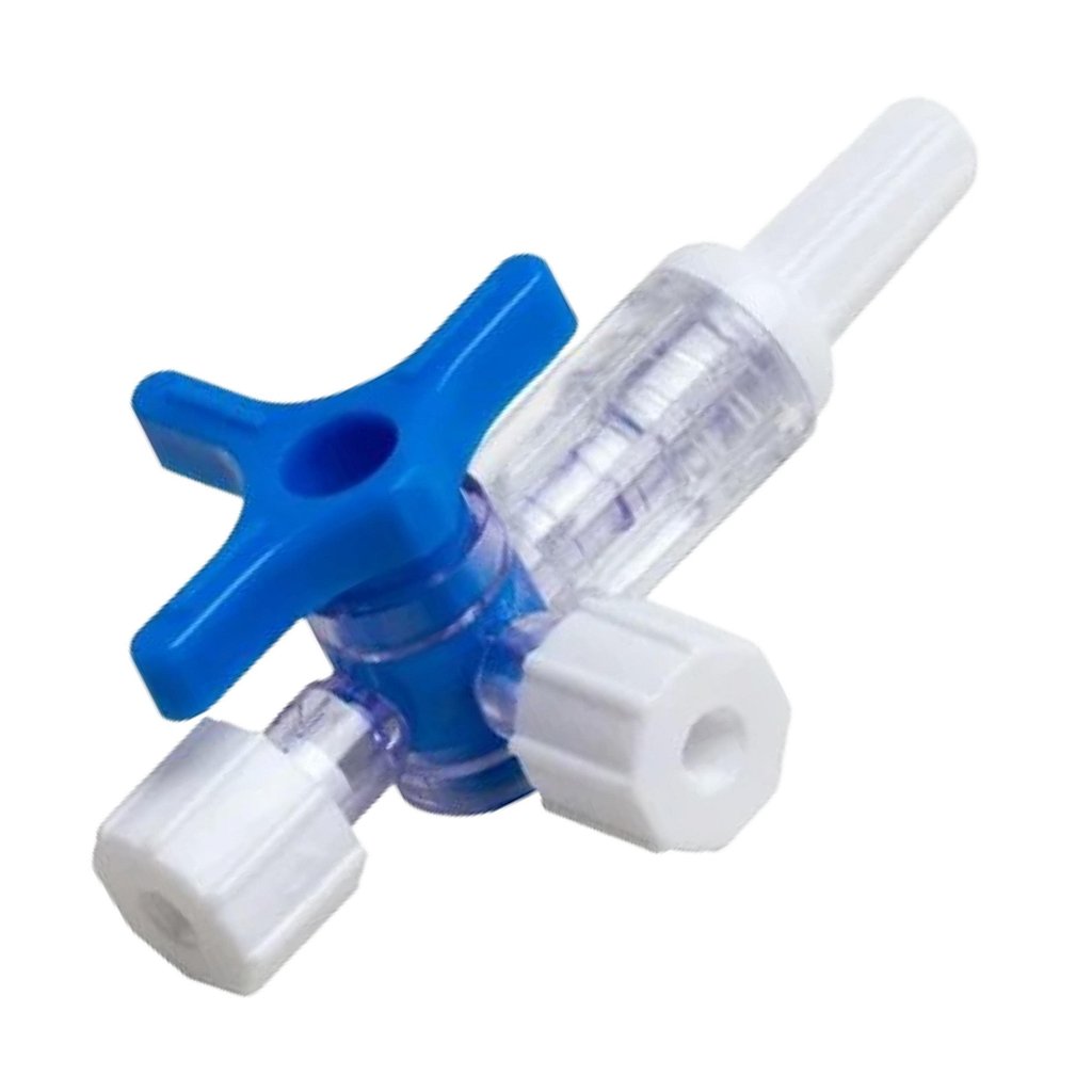 Indicado para duplicar o acesso venoso e controlar o direcionamento do fluxo de soluções de vias distintas, permitindo o fluxo simultâneo ou a interrupção em qualquer uma das vias.